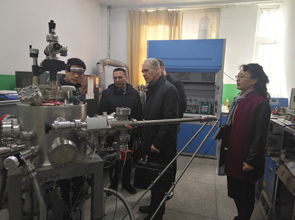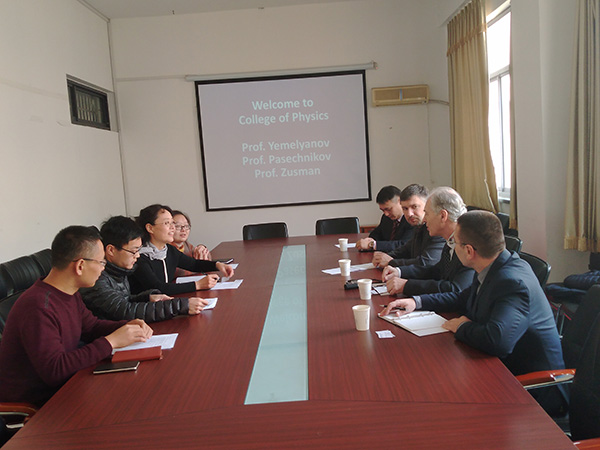 我院院长滕冰对三位教授的到访表示热烈欢迎,并就我院的学科专业设置、科研方向和学生培养等作了详细介绍。Pasechnikov教授重点介绍了坦波夫国立大学物理与材料学院的专业设置和主要的科研领域,表示希望同tyc5997太阳集团开展深入合作。会谈中,双方重点在学生联合培养、科研合作等方面进行了深入探讨和交流,并达成初步合作意向。会谈结束后,客人参观了我校tyc5997太阳集团材料物理专业实验室。