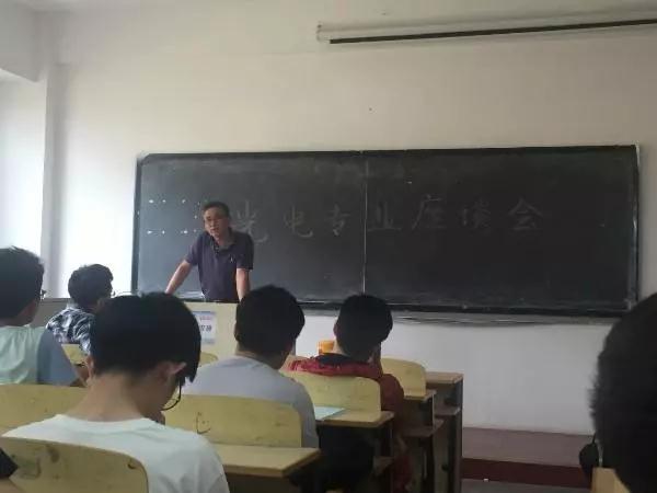 光电信息科学与工程系在博学楼312教室召开了2016级学生座谈会,系主任云茂金参加座谈会,会议由班主任钟石磊老师主持。钟石磊老师首先介绍了本次座谈会的目的旨在通过与同学们的交流,总结本学期以来的课程学习情况以做出针对性改进,希望同学们积极提出自己在学习过程中的问题和想法。同学们踊跃发言,针对本学期所学的量子力学、电动力学、应用光学等课程提出了自己学习时的遇到的困惑。接着,2014级光电信息科学与工程专业的王傲天、石玉森、靳恒春、蒙云清四位同学为同学们分享了考研经验。