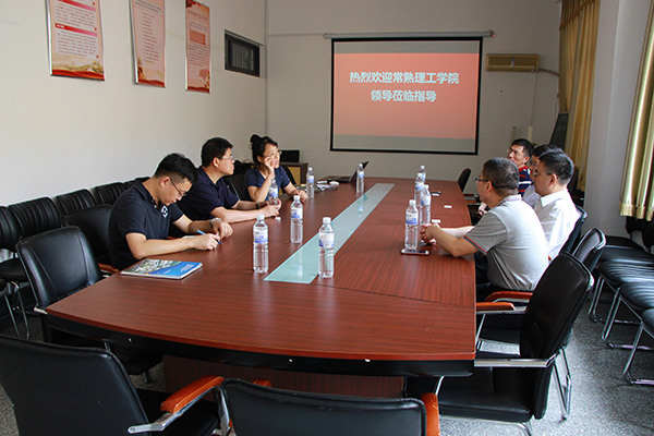 7月16日下午,常熟理工学院校长江作军、副校长张根华、发展规划处处长袁棠鑫、教务处处长钱斌一行来我院考察交流。院长滕冰教授、院学术委员会主任李山东教授、应用物理国家级实验教学示范中心副主任石星军和钟石磊副教授参加了交流活动。