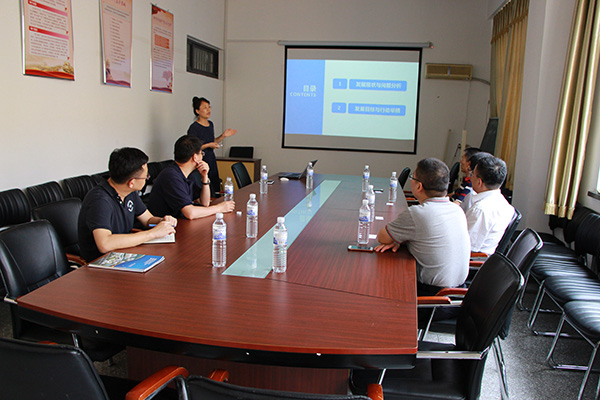 滕冰代表学院对常熟理工学院领导的到来表示热烈欢迎,并从专业设置、学科建设、平台建设、师资队伍、教学科研成果、人才培养、学术交流、国际合作办学、学院治理与服务等方面详细介绍了学校综合改革在学院层面所取得的成效、学院在发展过程中存在的问题、学院今后的发展目标和行动举措。