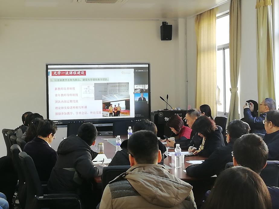 会议第一阶段,刘凤芹教授,王文军教授分享了各自国家一流课程建设及申报经验,并分别演示了各自课程如何挖掘、如何融入课程思政元素。张鲁殷教授细致讲解了“课程思政”,分享了如何从新的视角去设计和组织课程思政,指出做好课程思政关键在于教师熟悉课程及课程体系,重视思政元素的凝练度与契合度,并结合实际,结合山东省物理思政元素,加强自身专业能力和教学能力的提升。