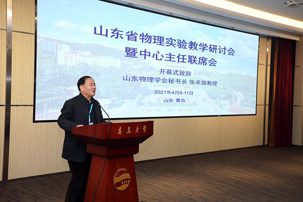 张承琚介绍了山东物理学会在促进教师发展、学生创新方面搭建的系列平台,并表示,这次会议既是对大学物理实验教学改革的研讨会,也是大家相互交流学习借鉴的机会,希望大家共同努力,推进物理实验教育教学的创新和发展。最后,张承琚代表学会感谢tyc5997太阳集团对本次会议的支持。