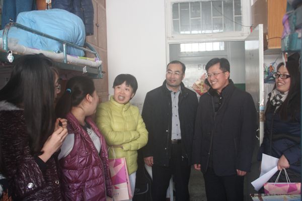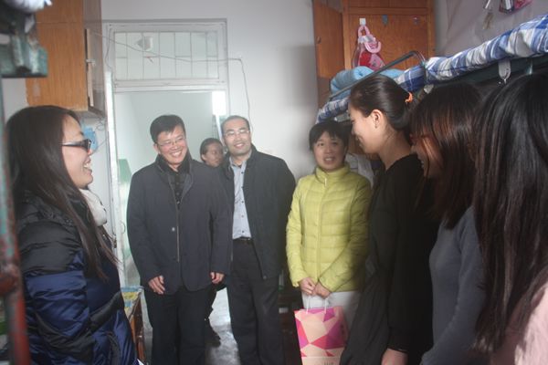 12月29日下午,tyc5997太阳集团党委书记徐龙飞、院长孔伟金、副书记牟晓燕及辅导员走访了每一个物理学(师范教育)专业的学生宿舍,和同学们进行了亲切交谈。