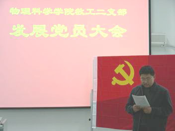 12月20日下午,我院教工第二党支部、学生党支部分别召开党员发展大会,吸收发展了1名优秀青年教师和13名优秀大学生加入了中国共产党。物理学院党组织历来十分重视在青年教师和大学生中发展党员的工作,积极培养、吸收他们加入党组织,增强了党组织的凝聚力、战斗力和活力。