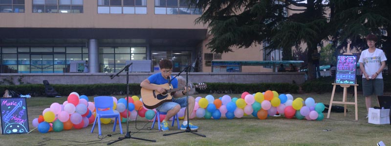 草坪上学子们一起感受、聆听那触动心弦的声音,吉他、风琴、轮番上场,《那些年》、《同桌的你》委婉悠扬,多才多艺的他们尽情展现自己。在与观众互动的有奖竞猜环节,将整场表演推向高潮。主持人说出曲目,观众上来弹唱,或者乐器弹奏出旋律,让观众猜歌名,引来阵阵的欢呼与掌声。音乐节现场,还引来众多到校园中纳凉的老人和儿童。“绿茵 青梦”你赴约了吗?