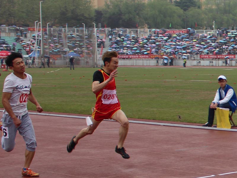 5月7日、8日,我校2015年体育运动会在中心校区体育场隆重举行。物理学子顽强拼搏,在多个项目取得优异成绩。在男子5000米比赛中,吾斯曼·阿里木荣获第5名,杨伟生荣获第6名;王亚荣荣获女子5000米第5名;都基宇荣获100米第8名;张帅荣获3000米第9名;杨宝龙荣获110米栏第9名;高原荣获铁饼第9名。