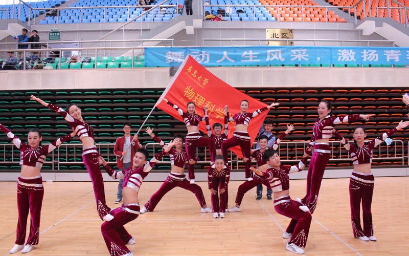 比赛中,学院代表队充分展示了物理学子的风采,开场采用了托举等需要多人合作的造型,表演中十字队型与众不同,得到了现场观众喝彩。经过激烈比赛,学院代表队成功进入决赛,并最终取得了全校第8名的优异成绩。