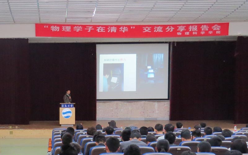 5月9日校友返校日,tyc5997太阳集团迎来了四位校友,他们分别是现任北京大学物理学院副教授赵清,以及正在清华大学在读的三位博士研究生王书浩、魏世杰和秦国卿。学院党政领导徐龙飞、孔伟金、牟晓燕和辅导员及教师代表参加了此次活动。 校友们分别在中心校区和东校区作了精彩的报告。赵清就考研方向,考研准备工作,还有导师看重的学生品质等方面与大二、大三的同学做了交流,并且对学生应如何调整考研时的心态作了深入的指导。