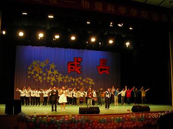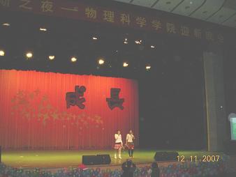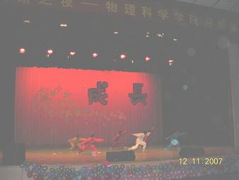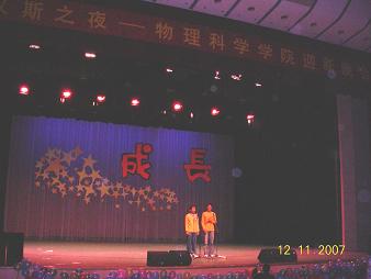 11月12日晚上,在我校音乐厅物理学院举办了07迎新晚会,整个晚会气氛热烈、健康向上,充分展现了我院广大同学的才艺和精神风貌。物理学院院长陈沙鸥、党总支副书记刘善东以及我院部分教师也参加了迎新晚会。
