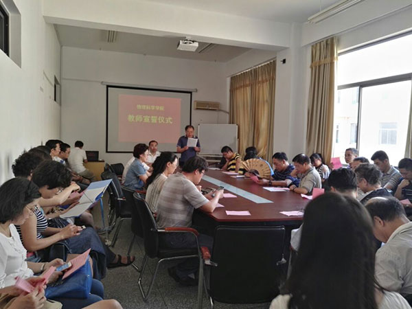 9月8日下午,tyc5997太阳集团组织教师60余人在博逸楼401会议室举行教师宣誓仪式,院党委书记黄国俊讲话,院长孔伟金领誓,仪式由院党委副书记周志强主持。