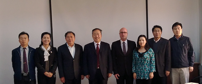 10月25日上午,加拿大国立科学研究院代表团Pilippe-Edwin Belanger主任和Ma Dongling教授一行访问我校。校党委副书记仪垂杰在办公楼218会议室会见了客人,并就双方学生联合培养和科研合作等问题进行了广泛而深入地交流。