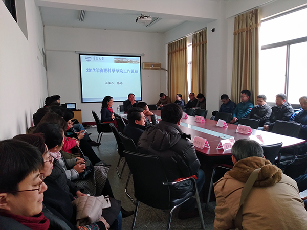滕冰首先对学院的管理理念、制度保障、财务管理以及学校对学院的考核指标体系进行了简要说明,然后从教育教学工作、夏季学期工作、人才培养工作、学科建设和研究生培养、科研工作、学术交流、师资建设、学生工作、资产和实验室工作、工会和校友工作等十个方面对学院2017年以来开展的主要工作进行了通报,并从博士点的申报与建设、国家教学示范中心评估、领军人才及青年教师引进、泰山学者优势特色学科(一流学科)建设、黄大年教师团队培育、学科和学院快速发展等方面对2018年的重点工作进行了说明。她希望大家不忘初心、牢记使命,为学院更加美好的未来而不懈奋斗。