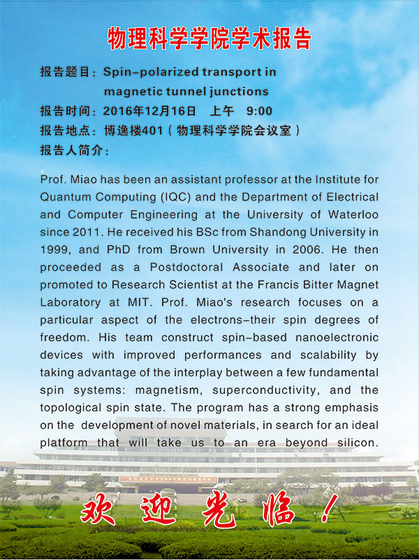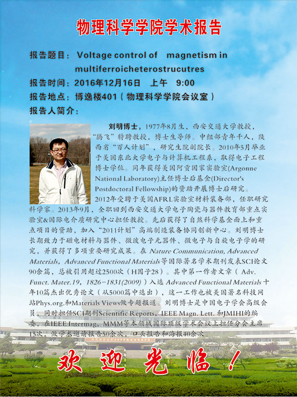 第二十二期物理前沿学术报告:刘明博士、苗国兴教授报告会