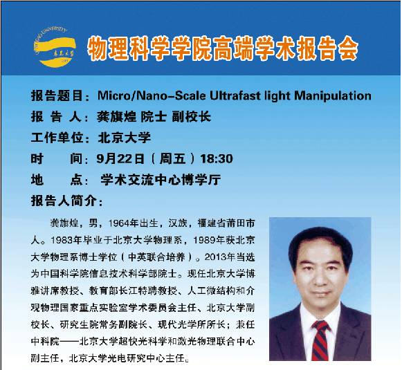 2017物理前沿学术报告第四十讲:Micro/Nano-Scale Ultrafast light Manipulation