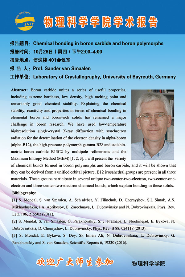 2017物理前沿学术报告第四十四讲:Chemical bonding in boron carbide and boron polymorphs