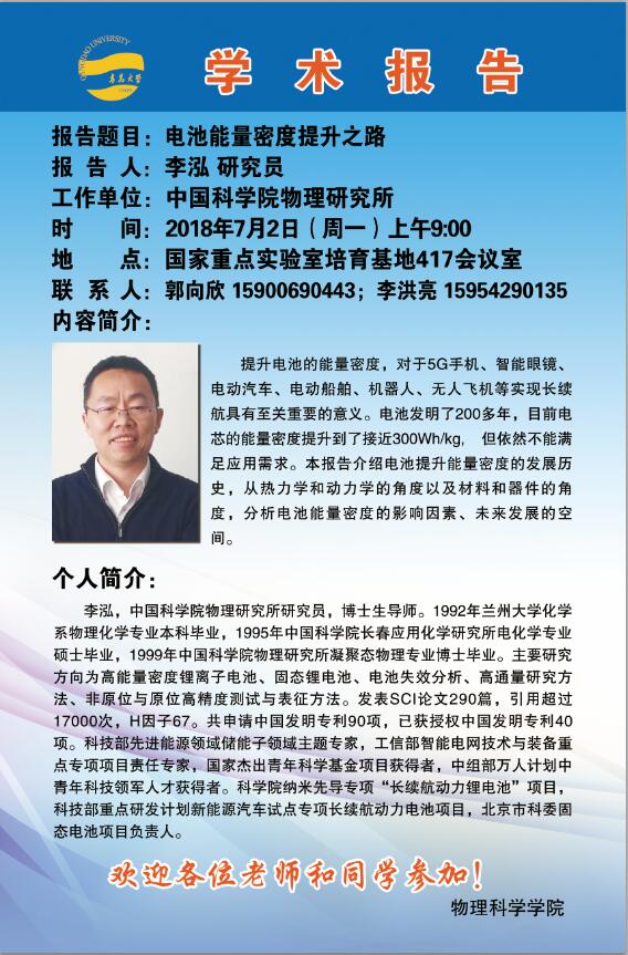2018物理前沿学术报告第二十讲:电池能量密度提升之路