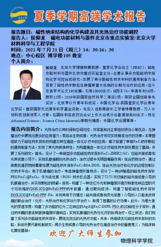 学术活动:磁性纳米结构的化学构建及其光热治疗功能调控