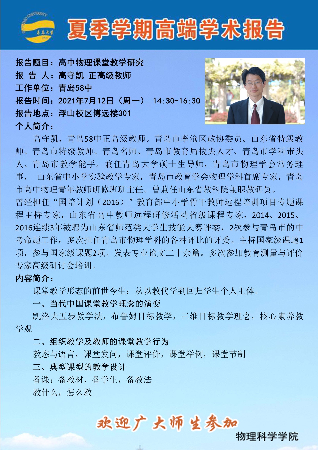 学术活动:高中物理课堂教学研究