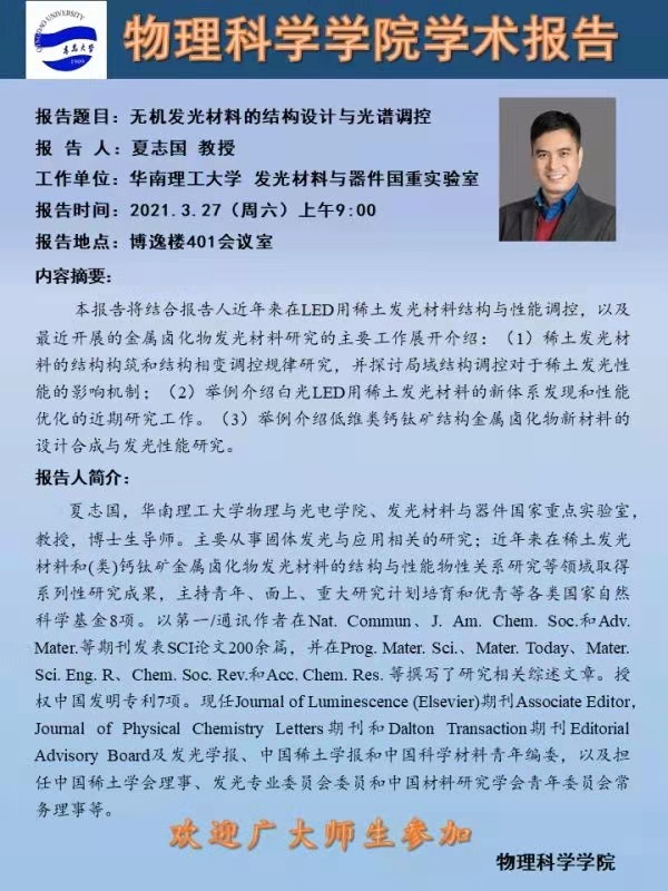 学术报告:无机发光材料的结构设计与光谱调控