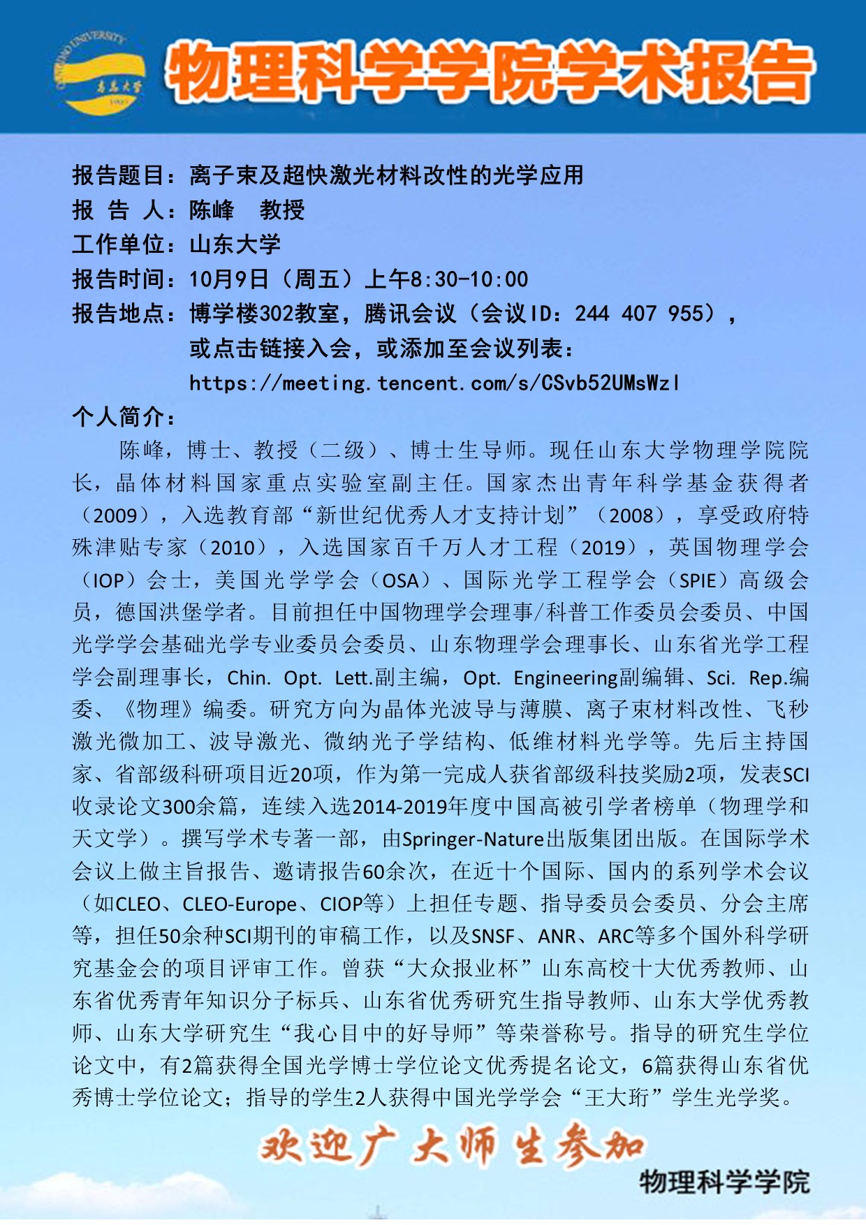 学术报告:离子束及超快激光材料改性的光学应用