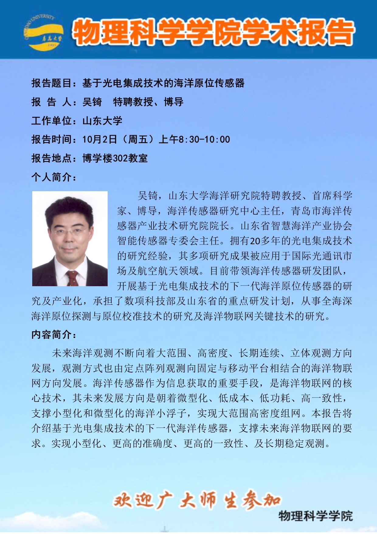 学术报告:基于光电集成技术的海洋原位传感器