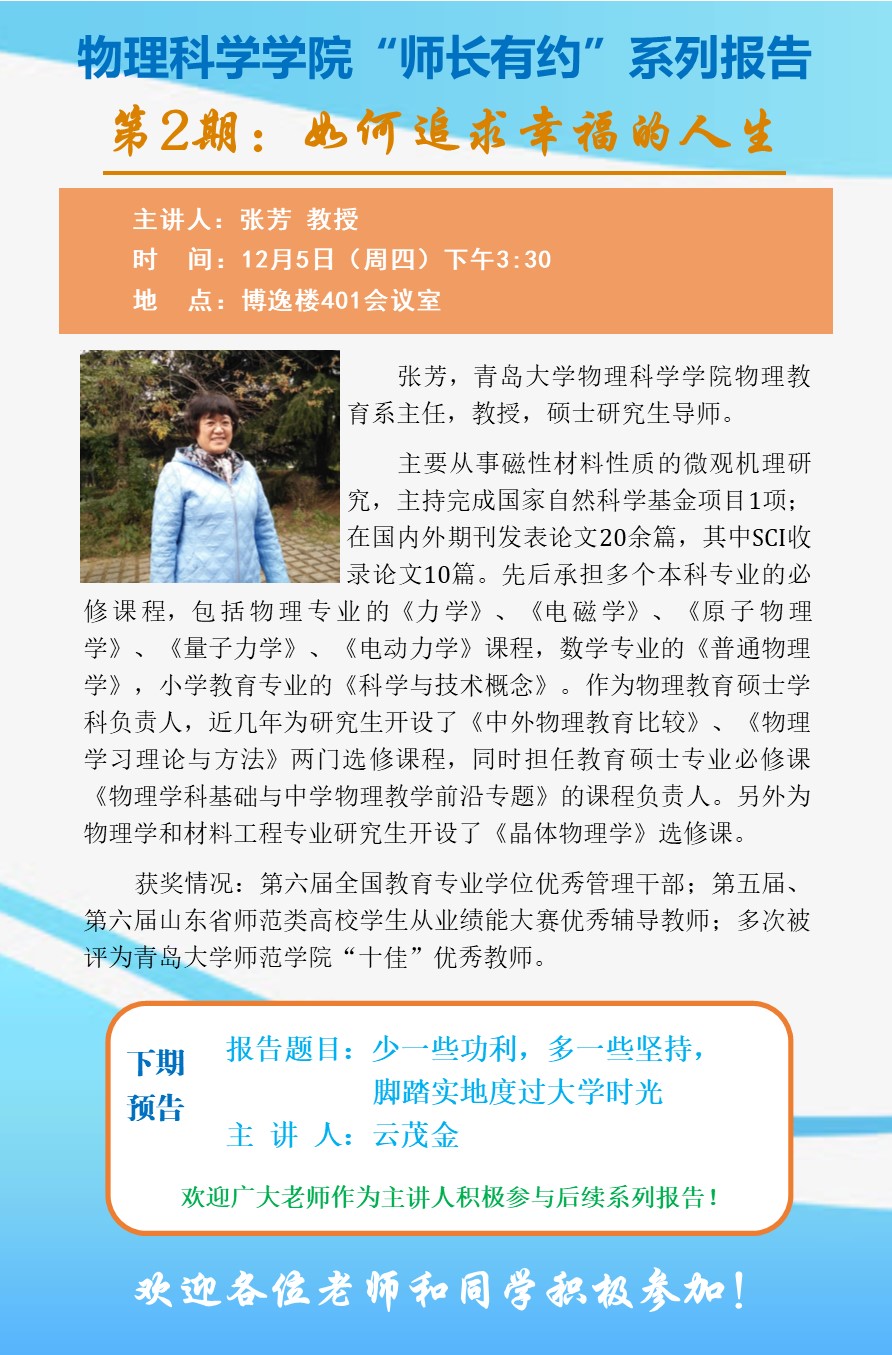 “师长有约”系列报告2:如何追求幸福的人生