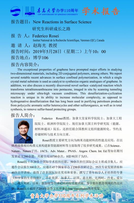 “新动能”物理学前沿学术报告9:New Reactions in Surface Science