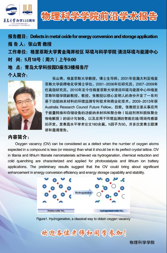 “新动能”物理学前沿学术报告7:Defects in metal oxide for energy conversion and storage application