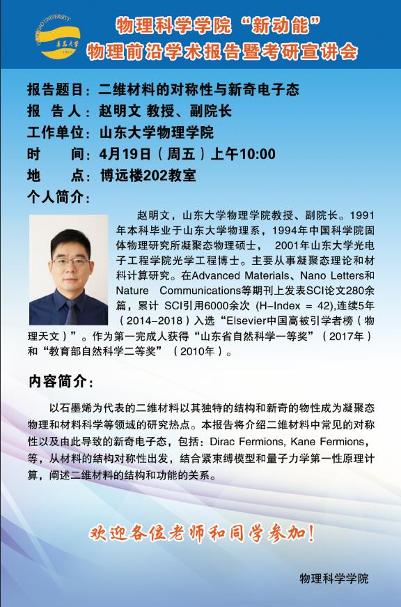 “新动能”物理学前沿学术报告5:二维材料的对称性与新奇电子态