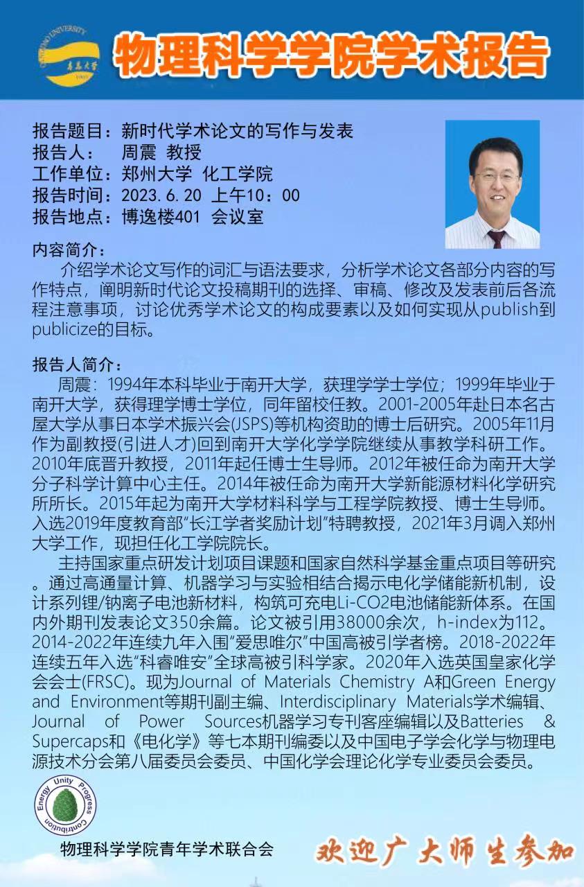 [学术活动]周震-新时代学术论文的写作与发表