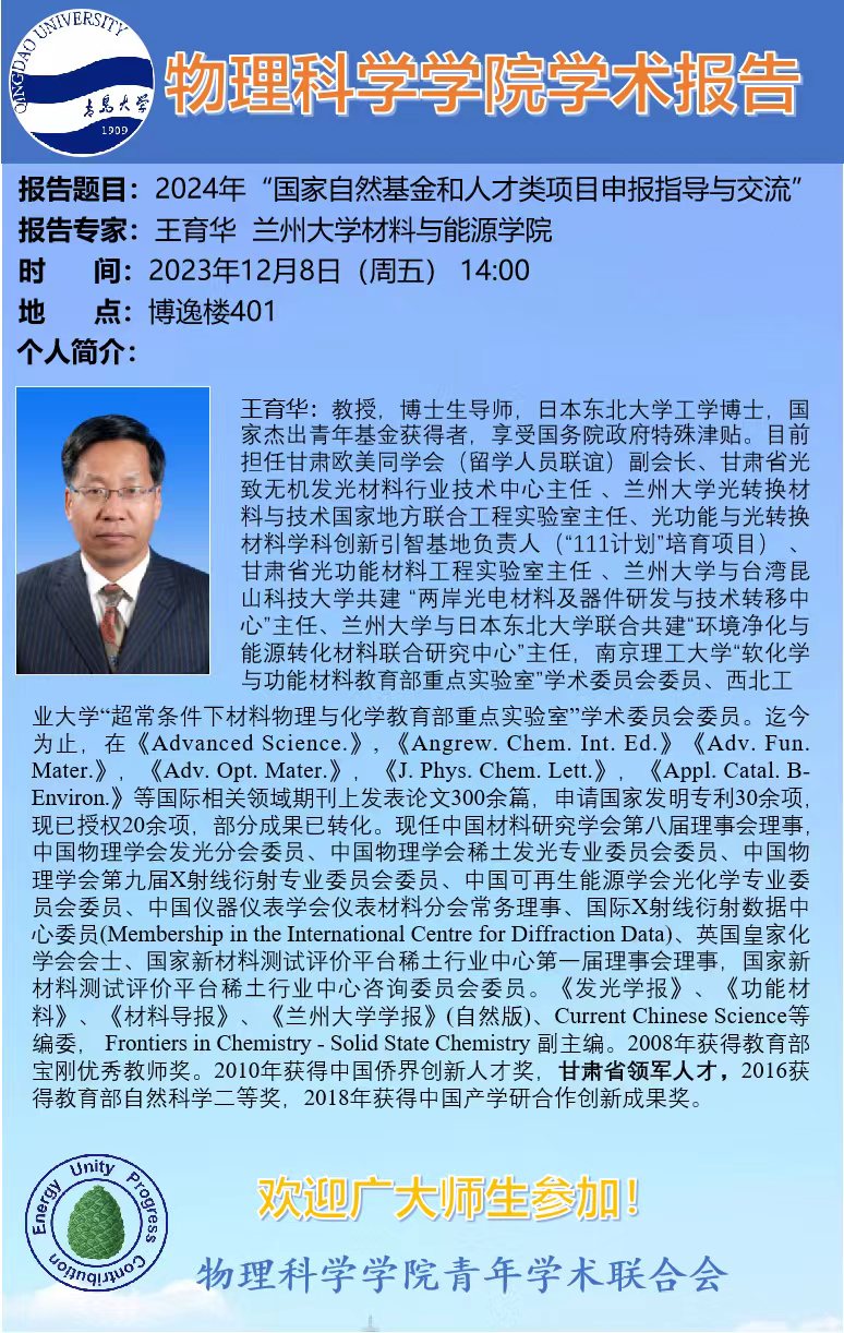 [学术预告]王育华-2024年国家自然基金和人才项目申报指导与交流