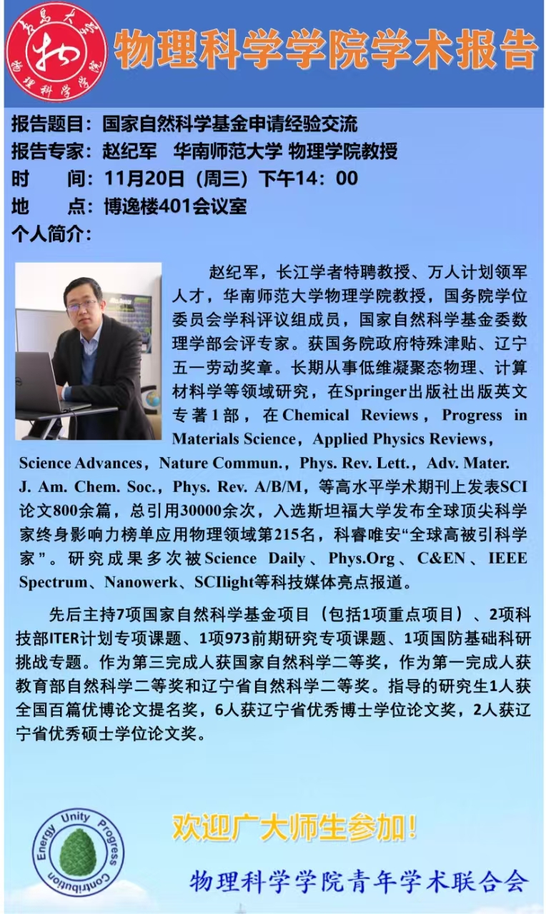 [学术预告]赵纪军-国家自然科学基金申请经验交流