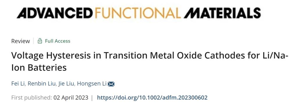 近日,我院教师在国际顶级期刊《Advanced Functional Materials》发表了题为“Voltage Hysteresis in Transition Metal Oxide Cathodes for Li/Na-Ion Batteries”的综述论文(Adv. Funct. Mater. 2023, 2300602)。tyc5997太阳集团为第一单位,李洪森教授为本文的通讯作者,硕士研究生李菲(被南开大学录取攻读博士学位)、刘仁斌为共同第一作者。