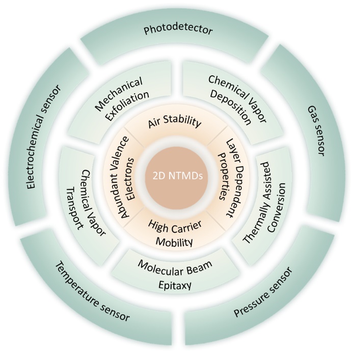 近年来,过渡贵金属硫族化合物(NTMDs)材料因其以其独特的结构和新颖的性质引起了人们的广泛关注。与大多数d轨道电子较少的常见过渡金属硫族化合物(TMDs)不同,NTMDs的d轨道几乎被完全占据,层间硫原子对应的pz轨道高度杂化,宏观上表现为更强的层依赖和层间相互作用。文章以二维NTMDs材料独特的结构和性质为切入点,系统地总结了NTMDs的合成方法,详细综述了其在光电、气体、压力和电化学等多种传感器领域的应用,并对这种材料面临的挑战和未来前景进行了总结。