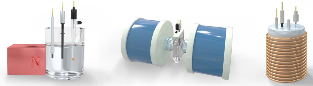 针对上述问题,该研究通过制备Co-Ru@RuO2亚铁磁材料和外加(0-5 T)的磁场,系统研究了磁场对电解水的影响。该工作引入了“时空赋能”的新概念,表明磁场对电催化的影响不是静态的,而是关键取决于磁场施加的时机。小磁场(小于1 T)在循环伏安法CV激活之前施加是有效的,在电化学稳定测试后再添加小磁场是无效的。然而,施加极强的磁场会破坏电化学稳态。通过创新地准原位磁矩温度测量,建立了催化剂磁矩与其性能之间的直接相关性,证明了外部磁场可以诱导催化剂自旋态重排,从而增强催化活性。