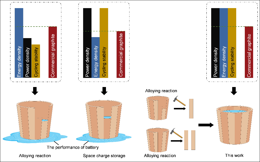 随着锂离子电池在电动汽车及大规模储能等领域的快速发展,同时实现高能量密度与高功率密度成为当前研究的核心挑战之一。传统石墨负极受限于较低的理论容量与不足的倍率性能,难以满足应用需求;Sn基负极虽具备较高理论容量,但在循环过程中存在体积膨胀及反应动力学缓慢等问题。近年来,空间电荷存储机制因其优异的快速充放电能力受到关注,但其能量密度仍存在不足。因此,如何将空间电荷机制与传统储能机制有效结合,实现性能协同提升,成为亟需解决的关键科学问题。针对上述问题,研究团队设计并构建了一种混合电子/离子/合金导体材料(Fe/Li₂O-Sn),通过将空间电荷存储机制与Sn的合金化反应进行耦合,实现两种机制的优势互补,从而兼顾高能量与高功率输出。研究表明,金属Fe与Li2O之间的强界面作用及其丰富界面结构,有效构建了电子与离子协同传输通道,显著促进锂离子的快速扩散;与此同时,Sn的合金化反应在该体系中不仅保持了较高理论容量,得益于混合电子/离子/合金导体的结构设计表现出明显改善的反应动力学。通过XPS、XANES、EXAFS及磁学分析等多种表征手段,系统揭示了该材料中空间电荷储能与合金化反应的协同机制。电化学测试结果表明,该电极在40 A g-1的高电流密度下仍可稳定工作,并实现1242 Wh kg-1的高能量密度,在10 A g-1条件下循环20000次后容量保持率达87%,展现出优异的倍率性能与循环稳定性。该研究从机制设计角度出发,为构建兼具高能量密度与高功率密度的锂离子电池负极材料提供了新的思路,对高性能储能体系的开发具有重要意义。