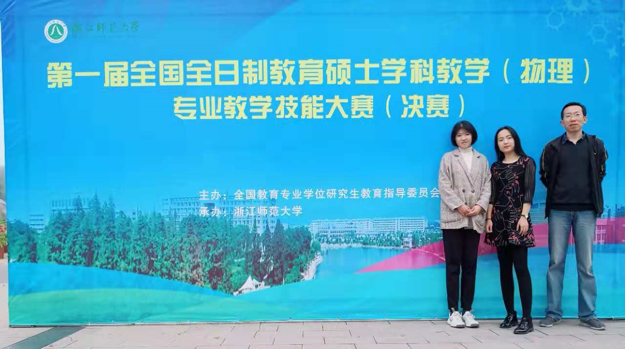 11月8日至10日,第一届全国全日制教育硕士学科教学(物理)专业教学技能大赛(决赛)在浙江师范大学举行。我院学子展现出了良好的竞技状态,其中高璇同学获得教学技能比赛三等奖,王晓宇同学获得优秀教学设计奖。