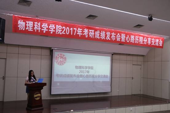 5月15日晚,tyc5997太阳集团在浮山校区图书馆报告厅,举行了2017年考研成绩发布会暨心路历程分享交流会。会议由2013级材料物理专业张宁夏同学主持。
