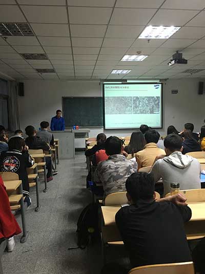 2017年4月12日晚6:30,我院2014级研究生冯红磊在浩园307教师作了题为“金属氧化物纳米材料的制备、微观结构及其物理化学性能研究”的学术报告。学院2016级全体研究生共50余人参加了报告会。报告会由学院副院长滕冰教授主持。