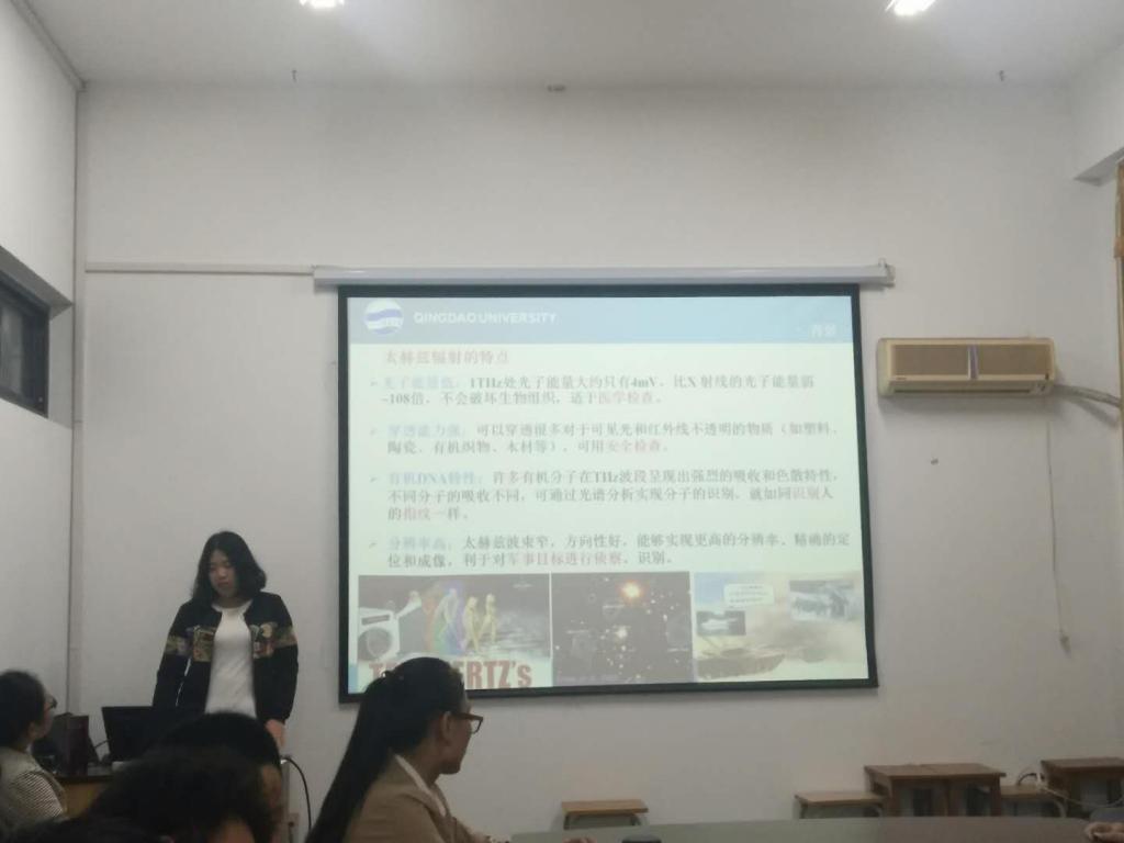 5月9日晚,我院2016级研究生滕菲在博逸楼401会议室作了题为《有机太赫兹晶体的原料合成、生长与性能》的学术报告。学院2017级全体研究生参加了学术报告。报告会由胡琛老师主持。