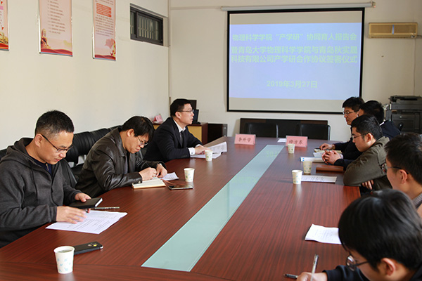 3月27日上午,我院“产学研”协同育人报告会暨tyc5997太阳集团与青岛秋实晟科技有限公司产学研合作协议签署仪式,在博逸楼401会议室举行。
