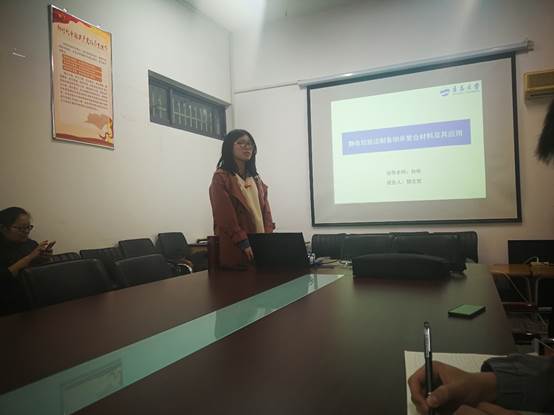 5月8日晚,我院2016级研究生郭文哲在博逸楼401会议室作了题为《静电纺丝法制备纳米复合材料及其应用》的学术报告。学院2018级全体研究生参加了学术报告。报告会由胡琛老师主持。