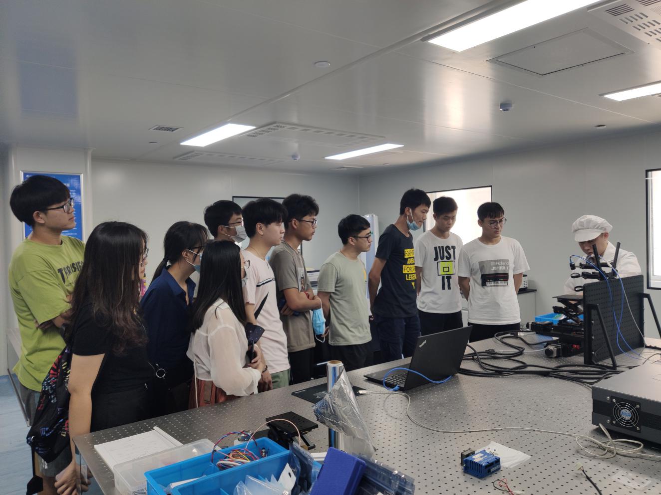 随后,公司技术研发总监刘永利带领研究生走进公司产品生产超净间,对产品的电路设计、光学光路设计、组装调试、软件系统开发和整机性能测试进行了详细介绍,并就同学们关心的问题做了解答,他还热情邀请研究生到公司开展实习实验,鼓励支持同学们结合个人研究方向和特长开展产学研合作创新项目研究。学院带队老师钟德高代表学院对公司的合作支持表示感谢,他与公司负责人就下一步选派研究生开展实习实验活动进行了深入交流。