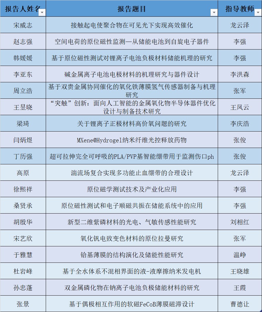 经过评委评审,推荐周立浩、王昱晓、于雅慧、赵志强、梁琦、杜岩峰同学获校优秀学术报告奖,推荐邹衍飞、徐凯同学获校优秀海报奖。