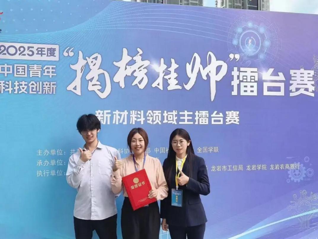 10月10-12日,2025年度中国青年科技创新“揭榜挂帅”擂台赛“新材料领域”主擂台赛(即第十九届“挑战杯”揭榜挂帅专项赛新材料领域主擂台赛)在福建省龙岩市举办。该赛事由共青团中央、中国科协、教育部、中国社会科学院、全国学联联合主办,全国110支决赛团队400余名学生及青年科技人才汇聚龙岩市。经过激烈角逐,tyc5997太阳集团硕士研究生侯宇参与的项目(第二位次)喜获新材料领域一等奖。