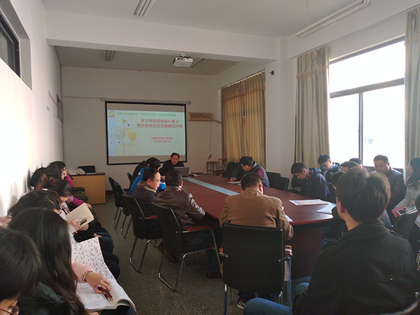 11月23日下午,tyc5997太阳集团在博逸楼401会议室举行十九大党章专题学习会。这既是一次党的十九大精神宣讲会,也是一次党支部书记专题培训会和党员专题教育会。学院党政领导黄国俊、滕冰出席会议,党支部书记、教工党员和学生党员参加会议。会议由院党委书记黄国俊主持。