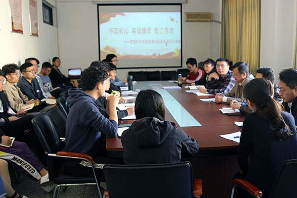 10月19日上午,学院在博逸楼401会议室举行“不忘初心、牢记使命、担当作为”院领导联系班级工作会议。院党委书记李升学、院长滕冰、党委副书记郝伟、副院长王乙潜和龙云泽出席会议,会议由郝伟主持。院长助理张永成,2017级班主任代表李洪森、张昆、王静,党政办王君学、刘燕,以及2017级各班相关班干部参加会议。