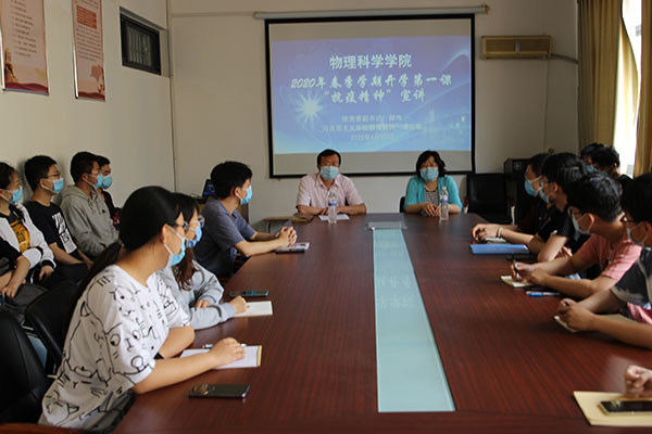 根据学校《关于2020年春季学期形势与政策课“抗疫精神”专题教学安排的通知》要求,6月13日上午,我院在博逸楼401会议室为学生举行了“抗疫精神”专题宣讲课,院党委副书记郝伟作了宣讲,马克思主义学院教师谭志敏参加了宣讲活动,物理教育系2018级学生现场聆听了宣讲。