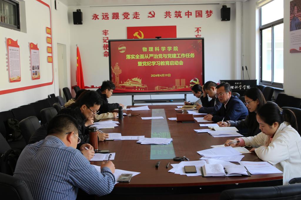 4月19日上午,我院在博逸楼401会议室召开落实全面从严治党与党建工作任务暨党纪学习教育启动会。会议由院党委书记郝伟主持,院党委委员和各党支部书记参加会议。