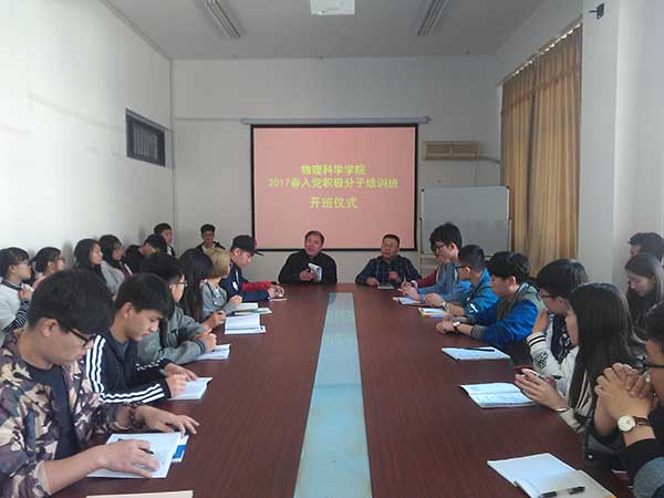 4月18日中午,我院2017年春季学期入党积极分子培训班开班,院党委书记黄国俊在博逸楼401会议室为全体入党积极分子作了题为《端正入党动机,争取早日成为合格的共产党员》的首场主题报告。院党委副书记周志强、学工办主任李慧晶参加培训会。